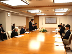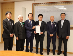 | 手交の様子(各団体代表者と宮下県知事) |