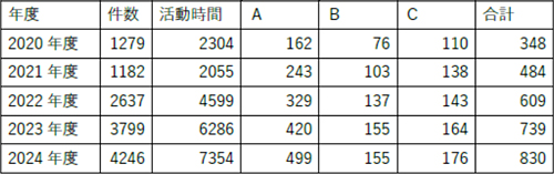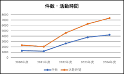 2025年3月末の4つの地域の利用会員数:499人、活動会員数合計:830人 活動件数:4,246件、活動時間合計:7.354時間となっています。詳細は以下の表をご覧ください。